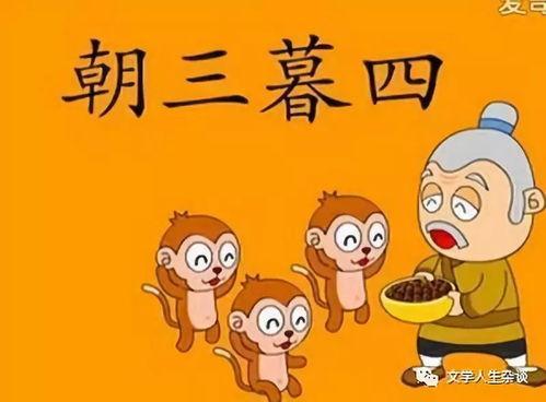 说起“朝三暮四”,这可是个古老的成语,源自《庄子·齐物论》。故事讲的是一位养猴子的人,他每天给猴子们分食物,有一天他跟猴子们说:“今天早上给你们三个橡子,晚上给你们四个。”猴子们一听,都急了,因为他以前都是早上给四个,晚上给三个。后来,他又改口说:“今天早上给你们四个橡子,晚上给你们三个。”猴子们这才安静下来。这个故事告诉我们,有时候人们就是喜欢捉摸不定,让人摸不着头脑。
